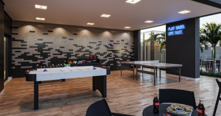 Tenha um salão de festas para as melhores celebrações, uma brinquedoteca com design inovador criado pela arquiteta Karla Teixeira, ping pong, pebolim, air hockey, piscinas adulto e infantil pra você se refrescar com sua família, um playground repleto de brinquedos pra criançada se divertir, um rooftop para ocasiões mais que especiais, uma gigante academia pro exercício diário e você não sair da rotina, coworking e uma área pra preparar um delicioso churrasco para os amigos.