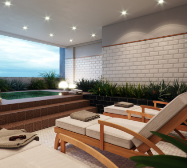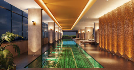 Tem piscina coberta com raia, academia com mais de 150m², coworking, quadra de squash, piscina com borda infinita, sauna, spa e um maravilhoso deck com bar.